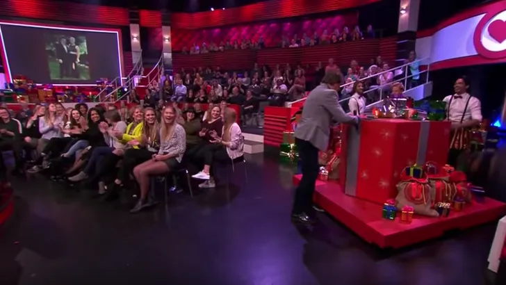 Ondertussen staat naast Ciska een grote cadeaudoos opgesteld. Je voelt de bui vast al hangen: want veel te vroeg springt ineens Jeremy uit de doos! Robert probeert de boel nog te redden en duwt snel de luikjes van de doos weer dicht. Even later bedenkt hij zich en zegt hij: "Nou kom er nu ook maar uit dan!". Ach, ook al liep de verassing niet helemaal zoals gepland, in ieder geval hebben Jeremy en Ciska een leuke kerst samen dit jaar!